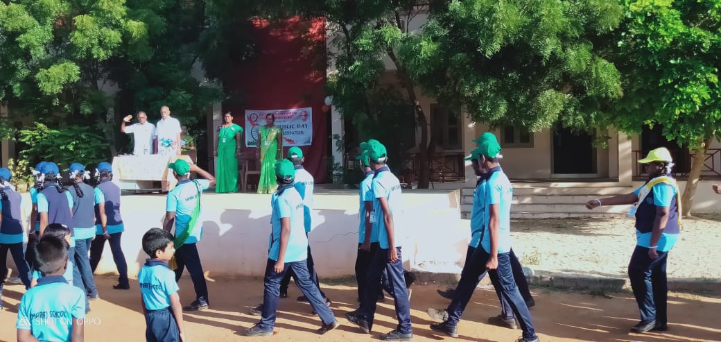 Mariappa Salt.Thiru.Gurunathan, hoisted the National flag.Our school VII std student Saraah Azizah deliverd the Republic Day address.Our School VII std & IX std student ,marched in their colourful houses caps along with the Scout students.The school echoed with patriotic fervour as the children of Class I A,B,C and Class II A,B,C danced to the tunes of patriotism.Class III A & B and Class IV A & B sang patriotic songs, and finally VII std student Sruthi delivered the vote of thanks.