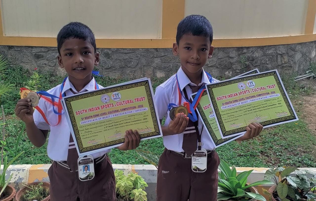 Our School students Praveen kumar and Naveen kumar from UKG participated in Skating and Drawing competition on 27th November 2022 and got 1st and 2nd place.