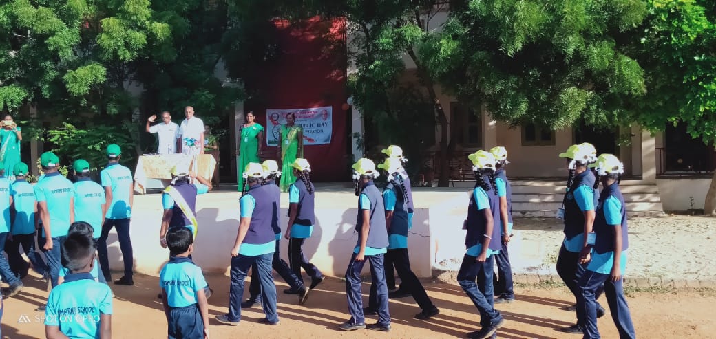 Mariappa Salt.Thiru.Gurunathan, hoisted the National flag.Our school VII std student Saraah Azizah deliverd the Republic Day address.Our School VII std & IX std student ,marched in their colourful houses caps along with the Scout students.The school echoed with patriotic fervour as the children of Class I A,B,C and Class II A,B,C danced to the tunes of patriotism.Class III A & B and Class IV A & B sang patriotic songs, and finally VII std student Sruthi delivered the vote of thanks.