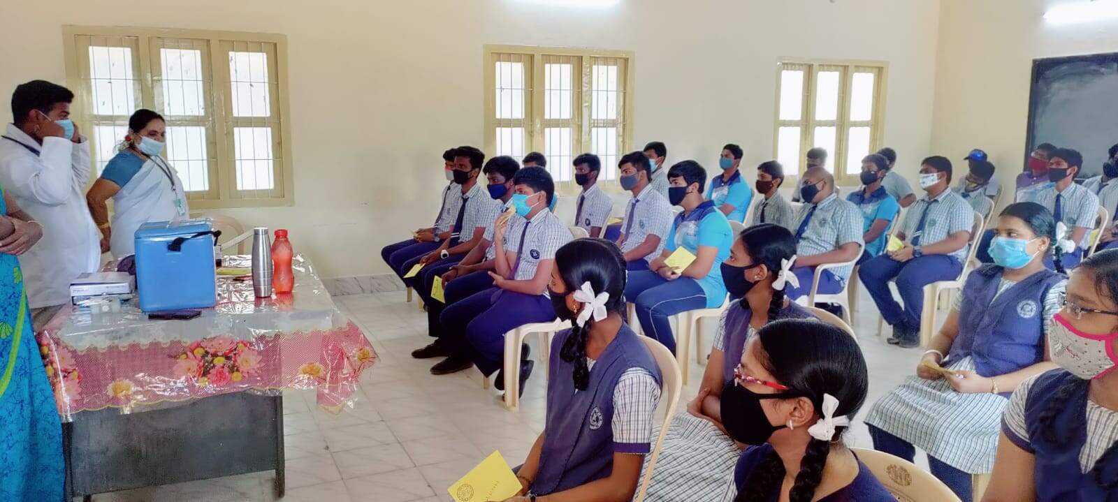 Our management have arranged a vaccination camp on 3rd January. Students from IX, X, XI and XII std were vaccinated successfully.