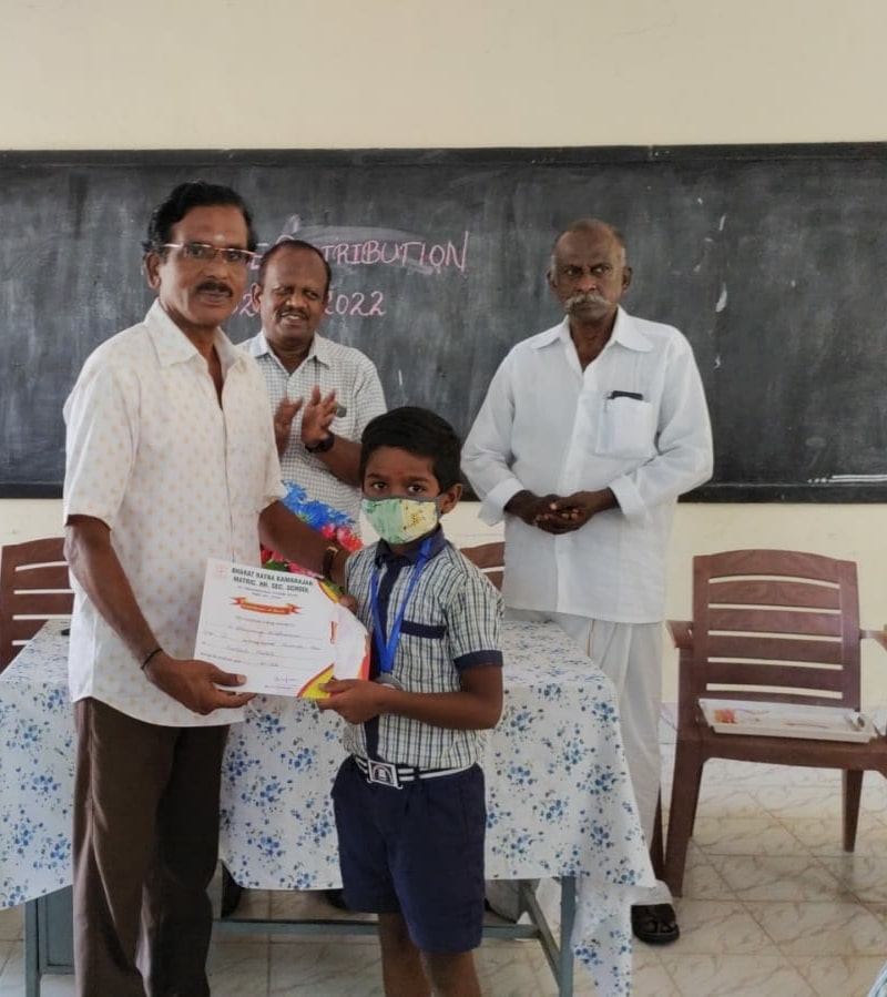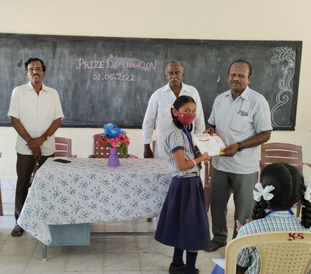 In Our School we have celebrated the Prize Distribution Ceremony on 2nd May 2022. Our Correspondent Thiru. Anandaraj, our Vice-President Thiru. Natarajan and our Treasurer Thiru. Muthuselvan distributed the prizes for the winners in Football, Running Race, Tables recitation and Thirukkural recitation competitions.