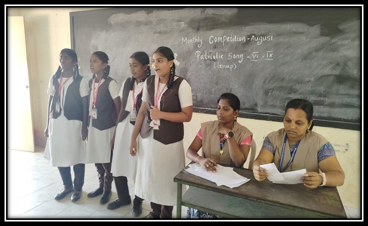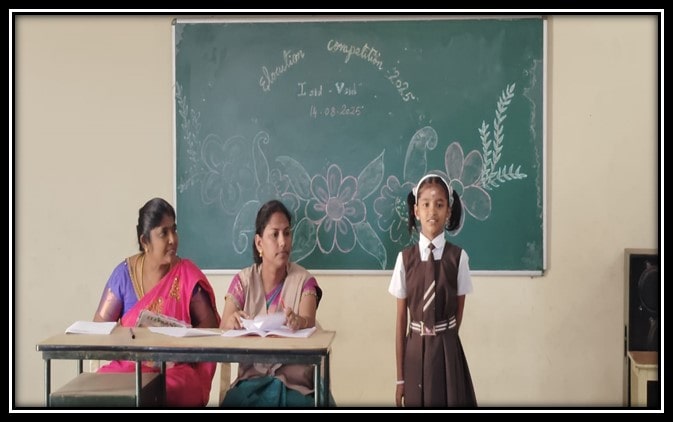 In our School we have conducted Elocution Competition -I to V Std, Group singing competition -VI to IX Std . Many of our students participated and won prizes.
